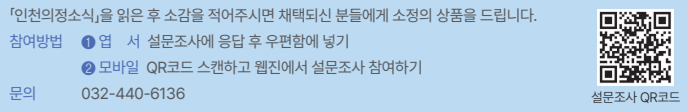 - 소식지를 읽으면서 인천시의회가 시민을 위해 어떤 일을 하는지,인천이 어떻게 변화하고 있는지 알 수 있어 뜻깊었습니다. 앞으로도 인천의 발전을 더 가까이 느끼고 싶습니다.